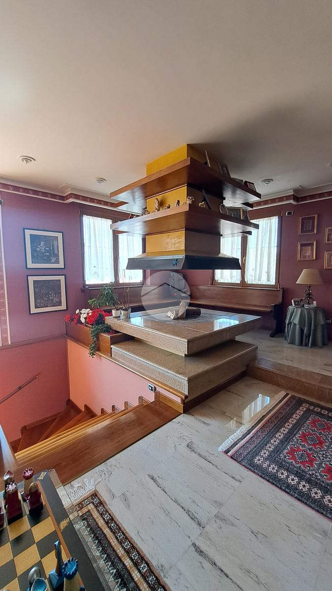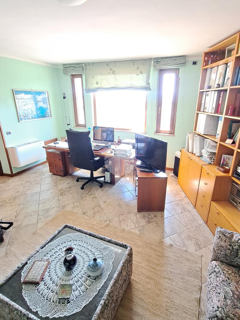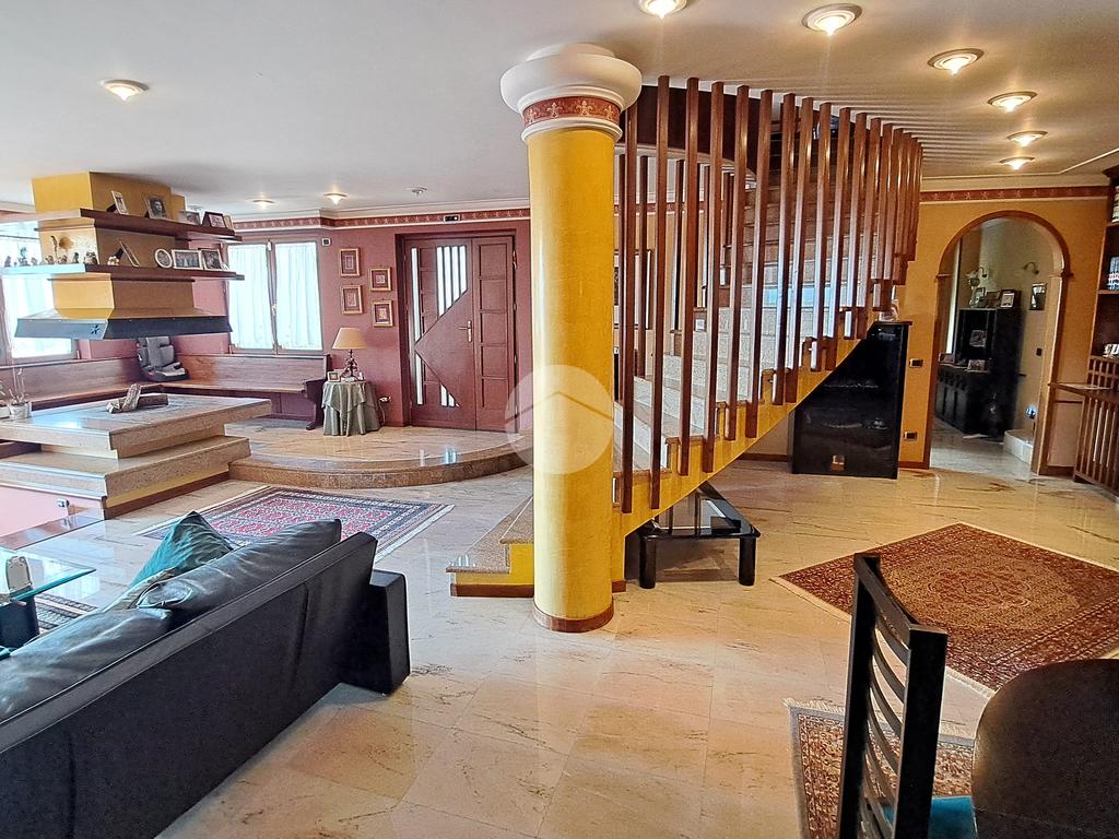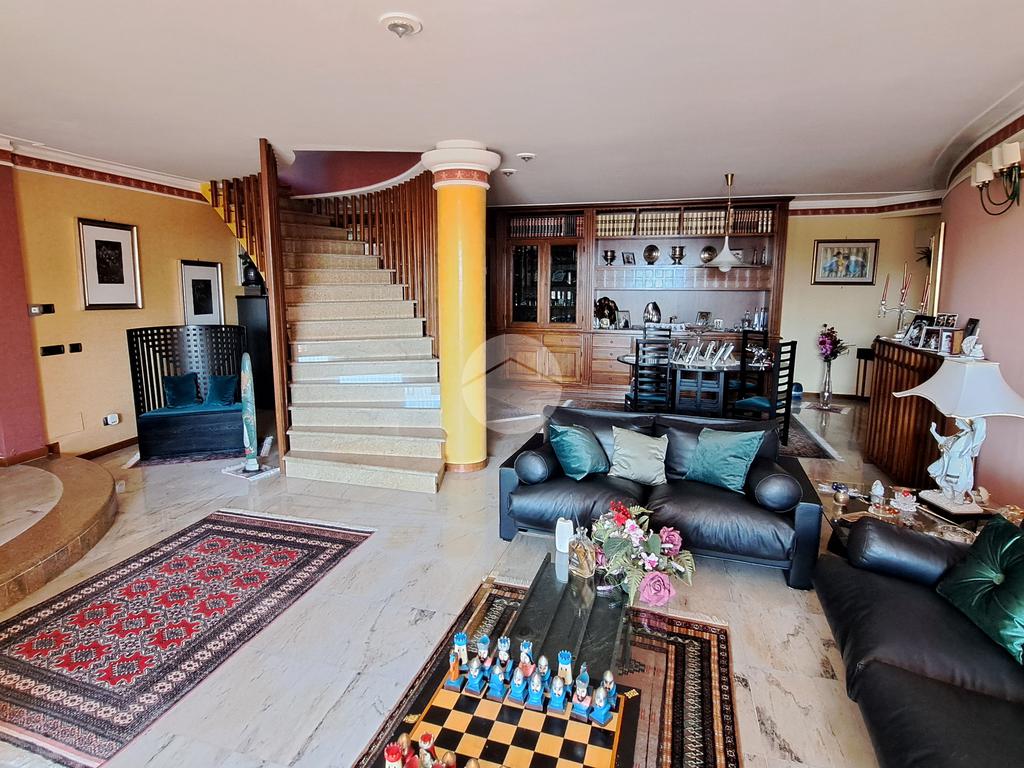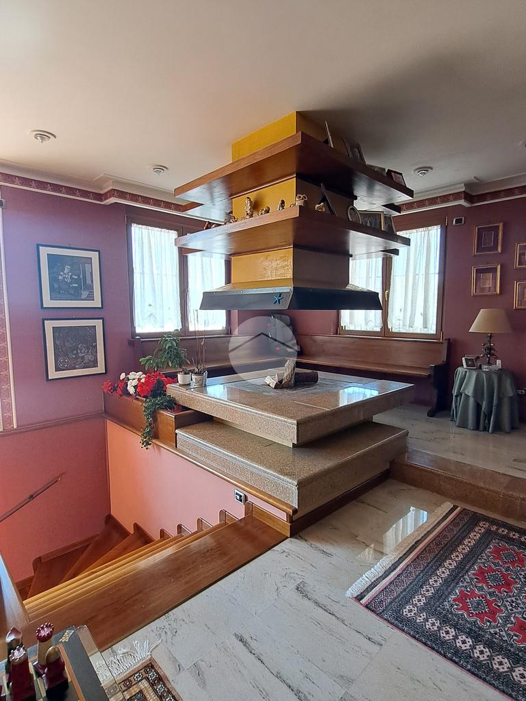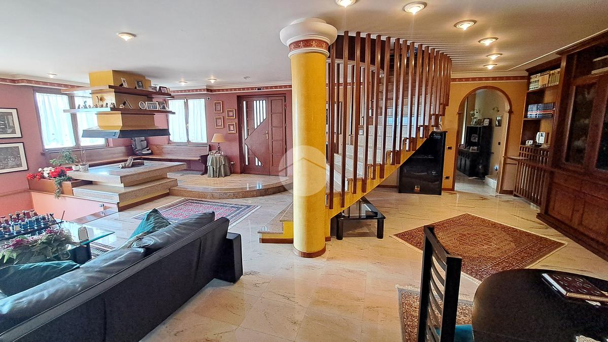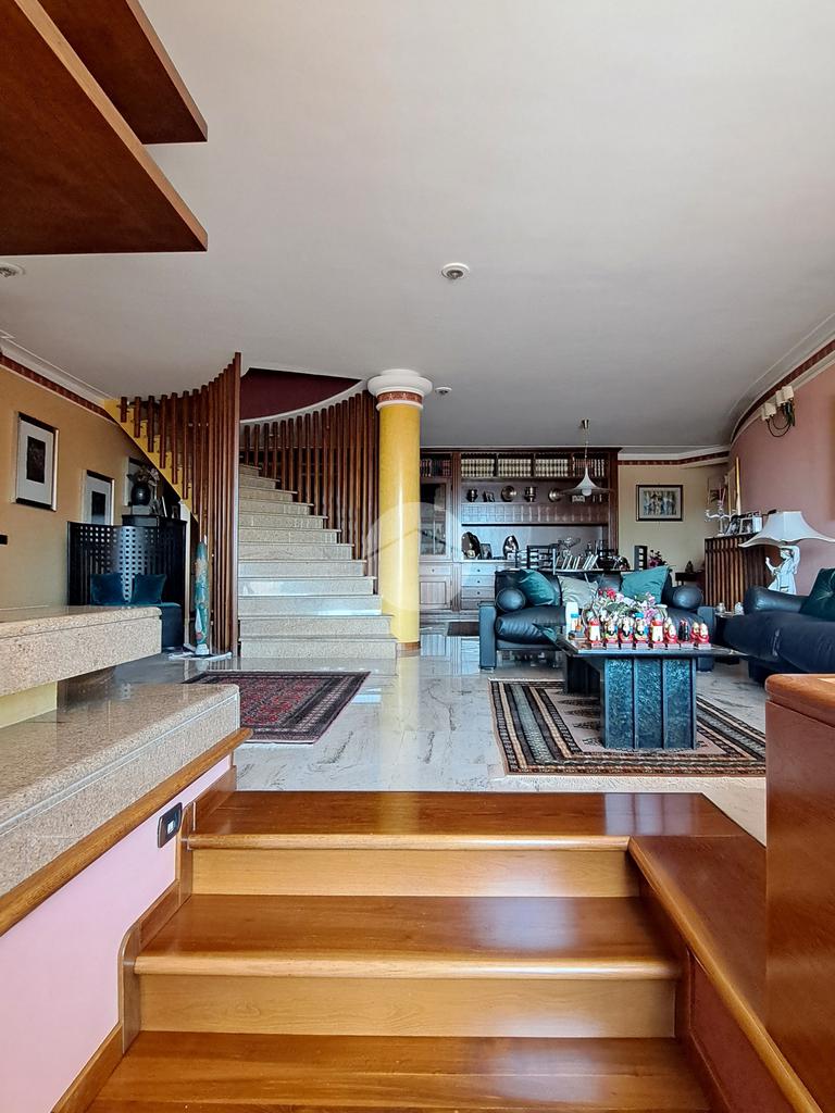 La villa si sviluppa su tre piani e vanta un doppio ingresso. Varcando la soglia si è subito accolti da un magnifico salone, luminosissimo, caratterizzato da tre finestre e arricchito da un camino ad isola, l'ideale per riunirsi attorno al fuoco. Al piano un grande terrazzo. Un disimpegno ci conduce ad una camera da letto, un grande studio, un bagno e una cucina.
