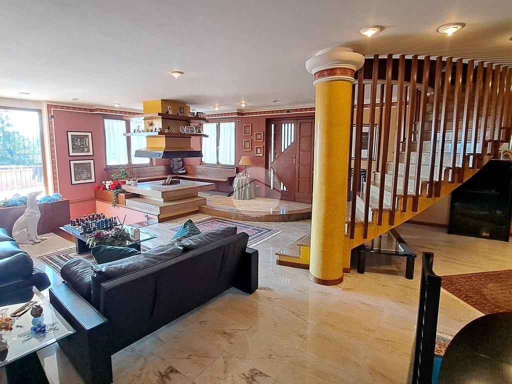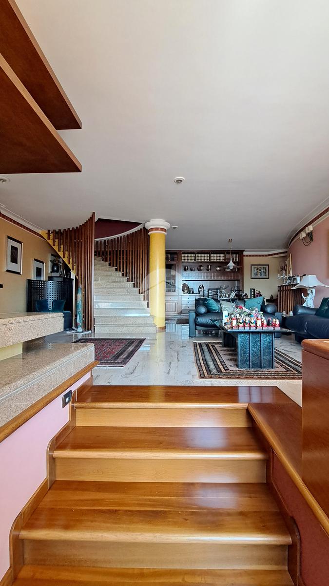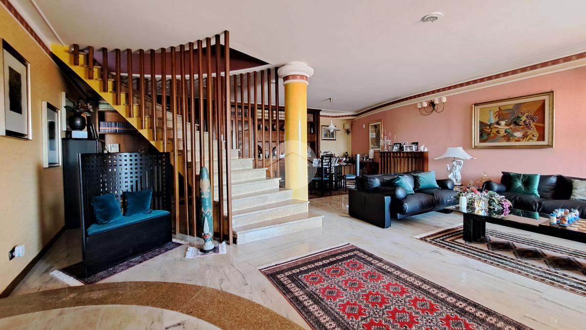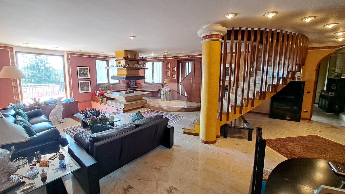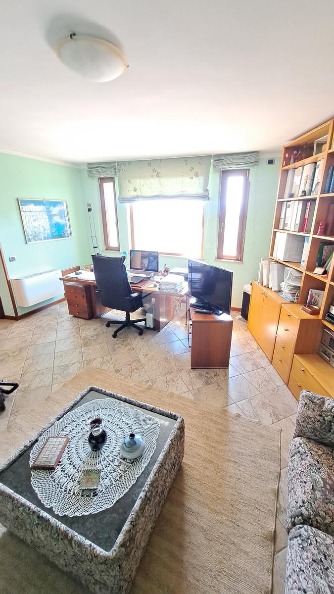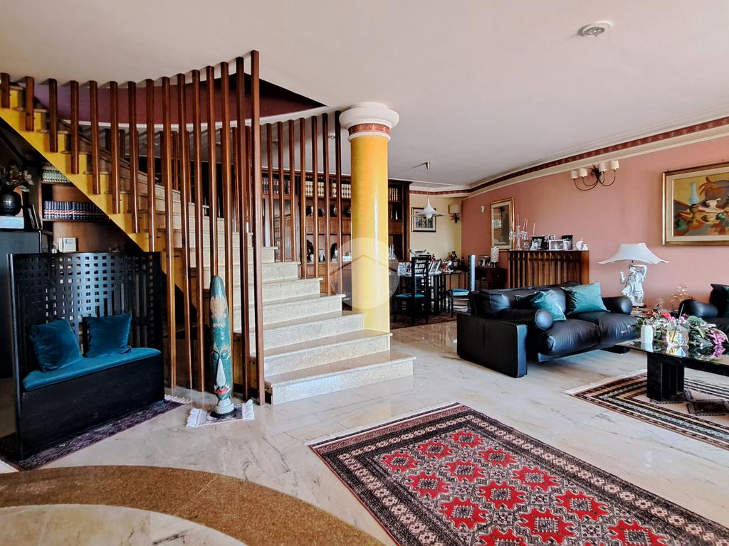 La villa si sviluppa su tre piani e vanta un doppio ingresso. Varcando la soglia si è subito accolti da un magnifico salone, luminosissimo, caratterizzato da tre finestre e arricchito da un camino ad isola, l'ideale per riunirsi attorno al fuoco. Al piano un grande terrazzo. Un disimpegno ci conduce ad una camera da letto, un grande studio, un bagno e una cucina.