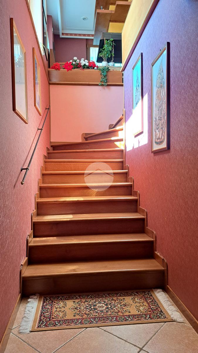 Dal soggiorno, percorrendo una maestosa scala, si sale al primo piano dove troviamo un area relax con accesso diretto ad un ulteriore terrazzo, tre spaziose e luminose camere da letto con affaccio panoramico sulle aree verdi circostanti, una cameretta con finestra adibita a spogliatoio e 1 bagno con antibagno.
