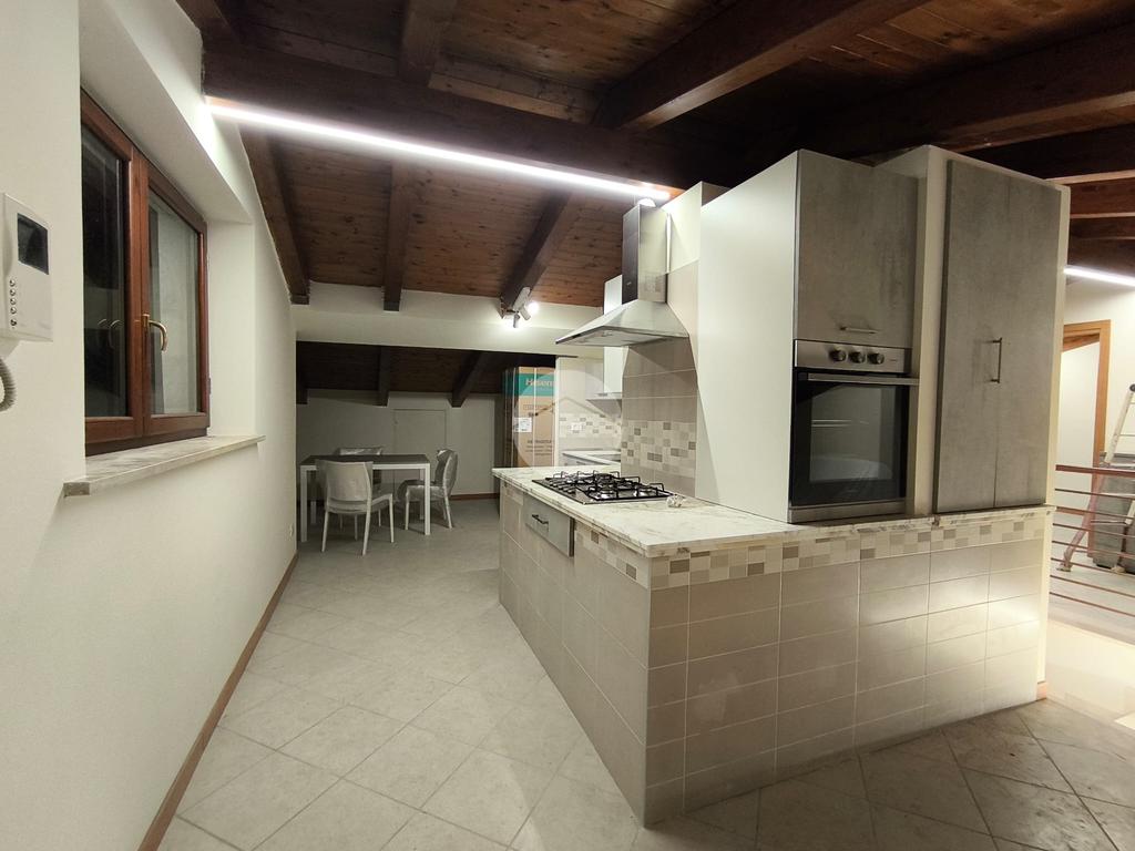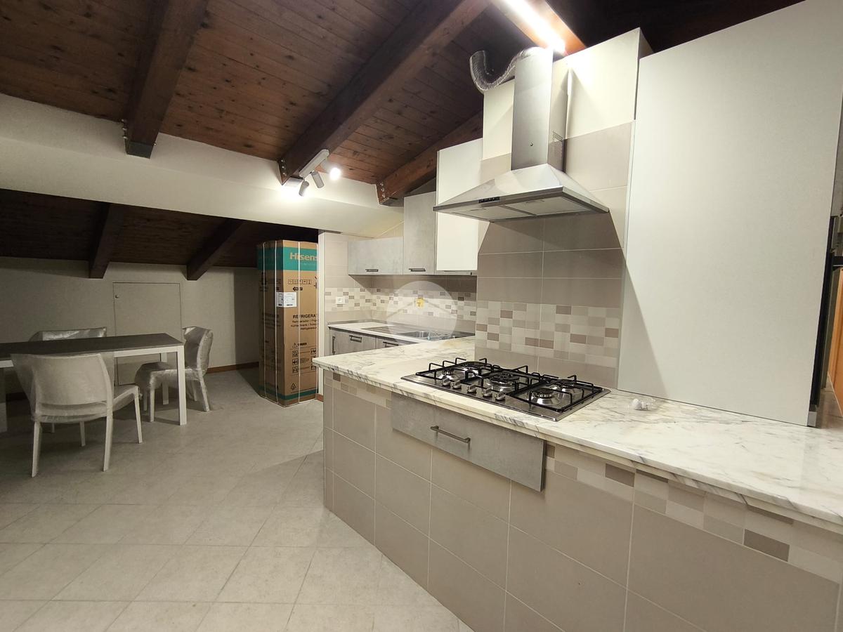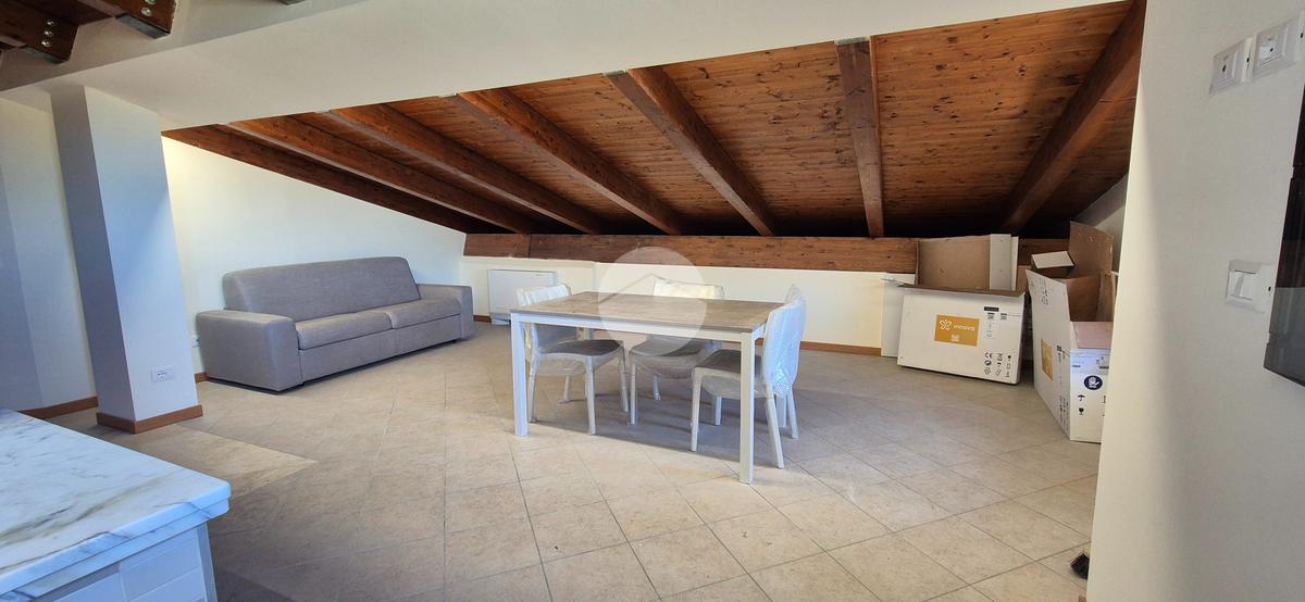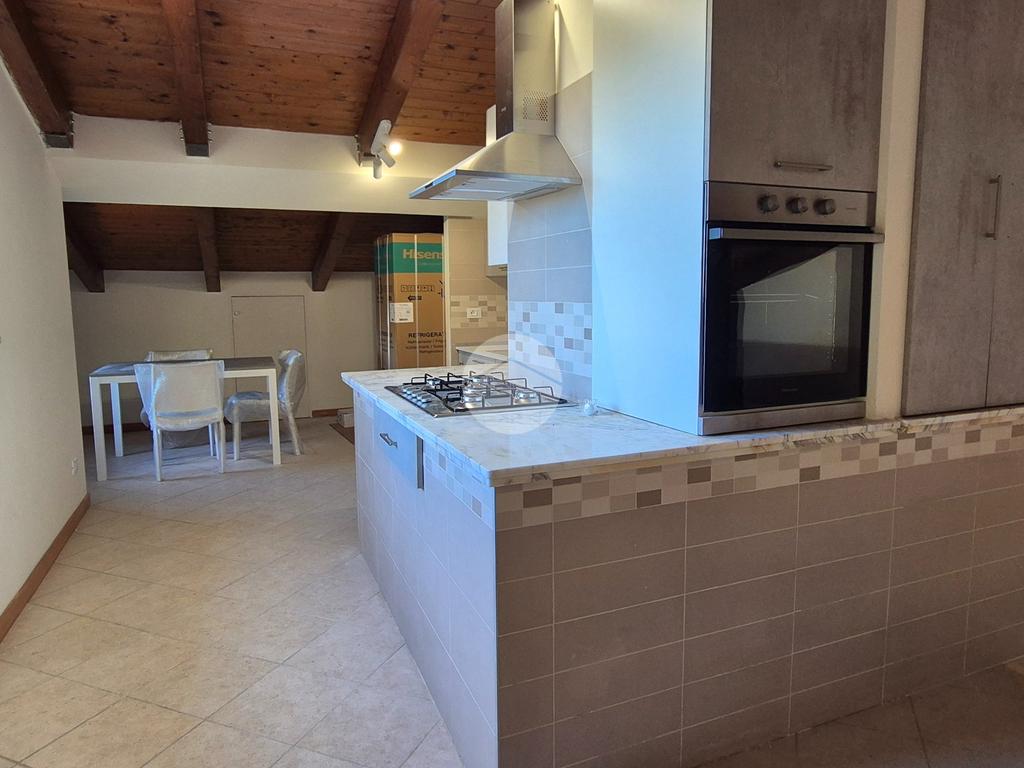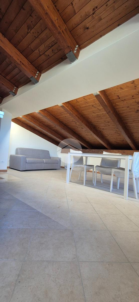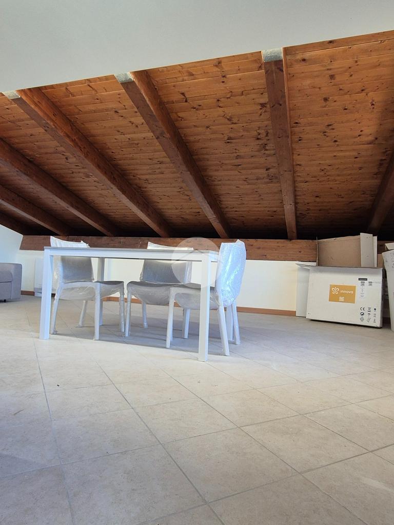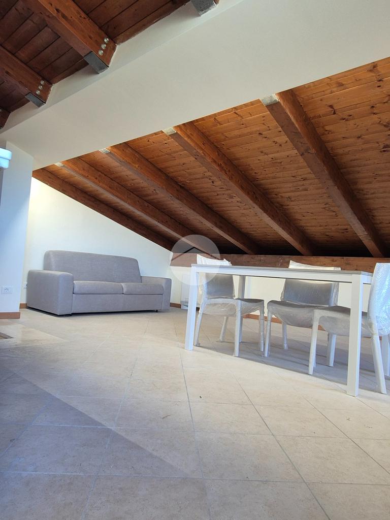 Una volta arrivati al terzo piano, raggiungibile anche con ascensore, dal portone di ingresso si prosegue con una rampa di scale che conduce all'appartamento composto da salone con angolo cottura, 2 camere da letto e bagno con vasca idromassaggio e doccia. I vari spazi bassi caratteristici di una mansarda possono essere sfruttati come armadi e ripostigli.
