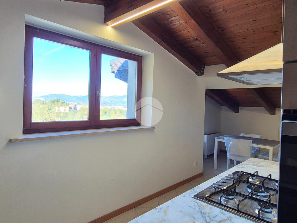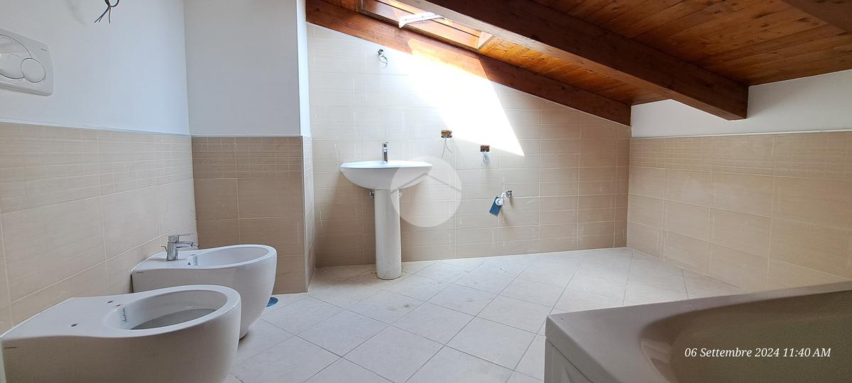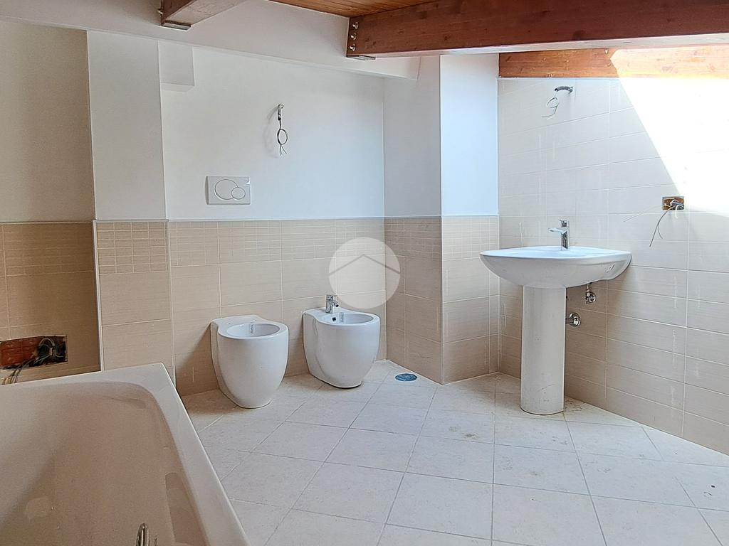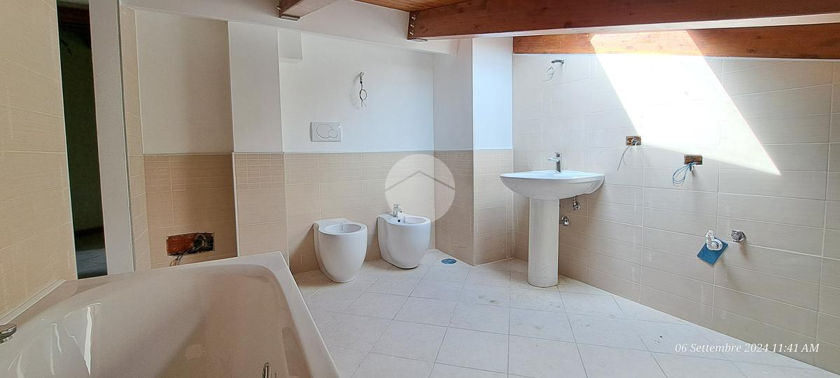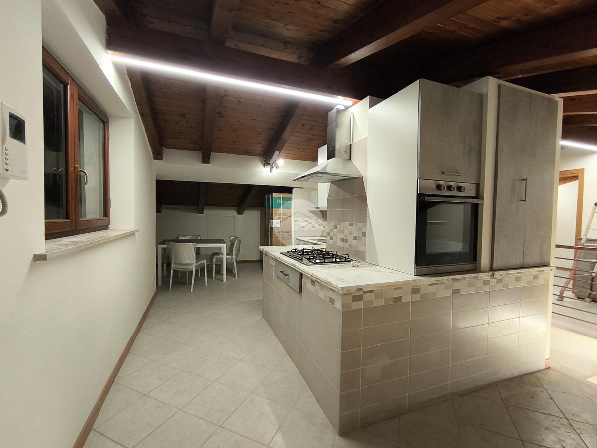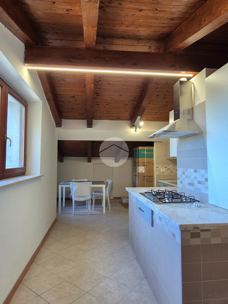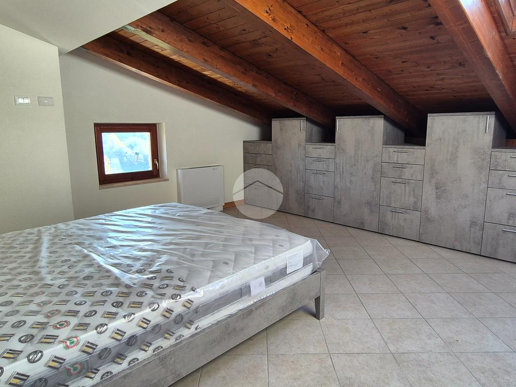 Una volta arrivati al terzo piano, raggiungibile anche con ascensore, dal portone di ingresso si prosegue con una rampa di scale che conduce all'appartamento composto da salone con angolo cottura, 2 camere da letto e bagno con vasca idromassaggio e doccia. I vari spazi bassi caratteristici di una mansarda possono essere sfruttati come armadi e ripostigli.