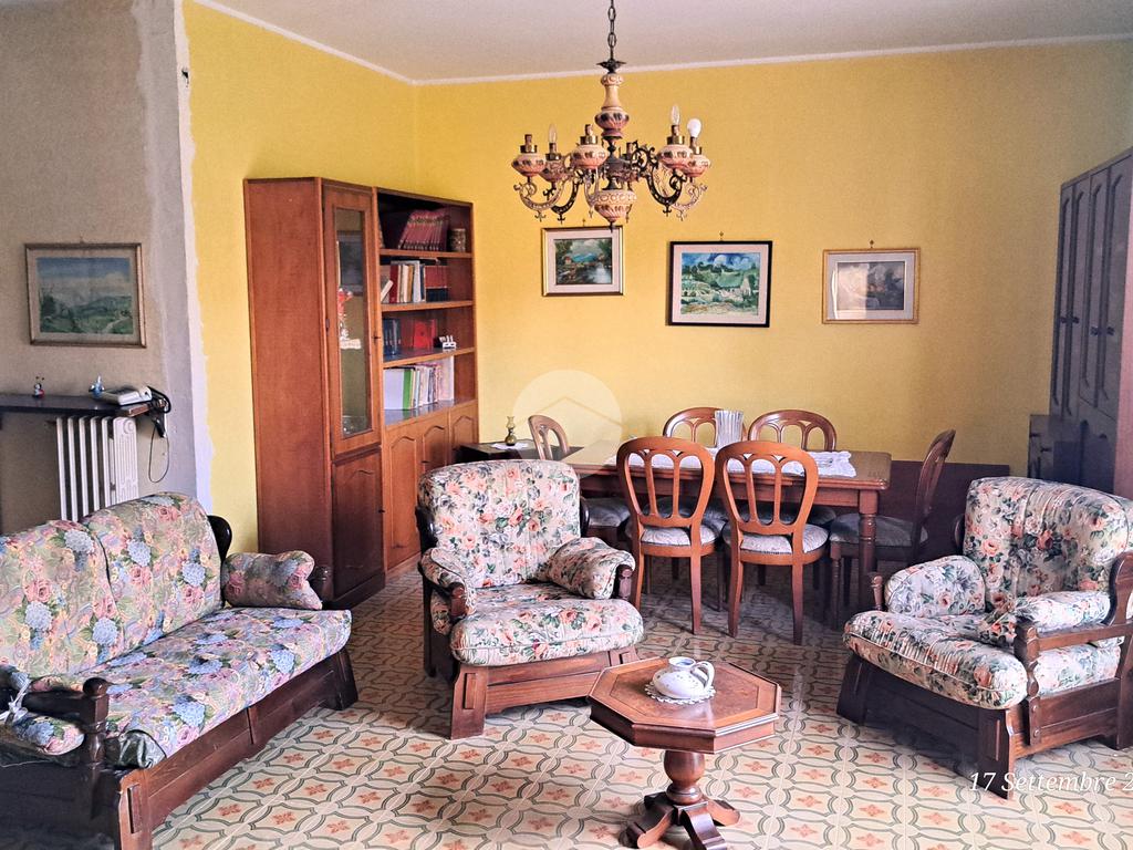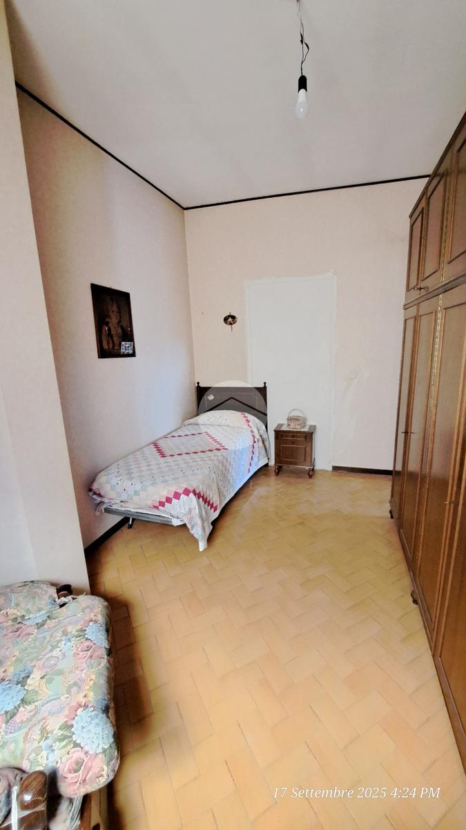 Entrando dal portone ci troviamo in un ingresso che affaccia direttamente su un'ampia sala ed ai vari ambienti della casa. Di fronte troviamo il soggiorno che gode di accesso al balcone, ambiente molto luminoso. Mentre nella parte destra troviamo una camera da letto ed un bagno di servizio. Con una buona ristrutturazione c’è modo di disporre l’appartamento in modo autonomo e ricavare anche una seconda camera da letto. Come pertinenze troviamo una soffitta addibita a deposito, una cantina ed un posto auto esclusivo.