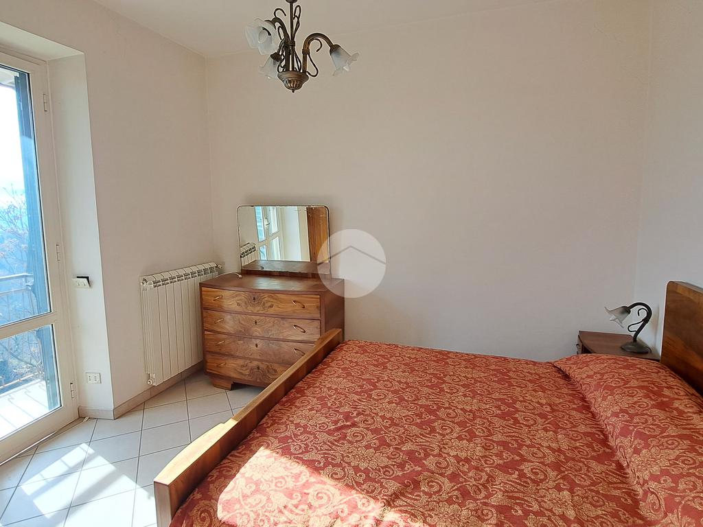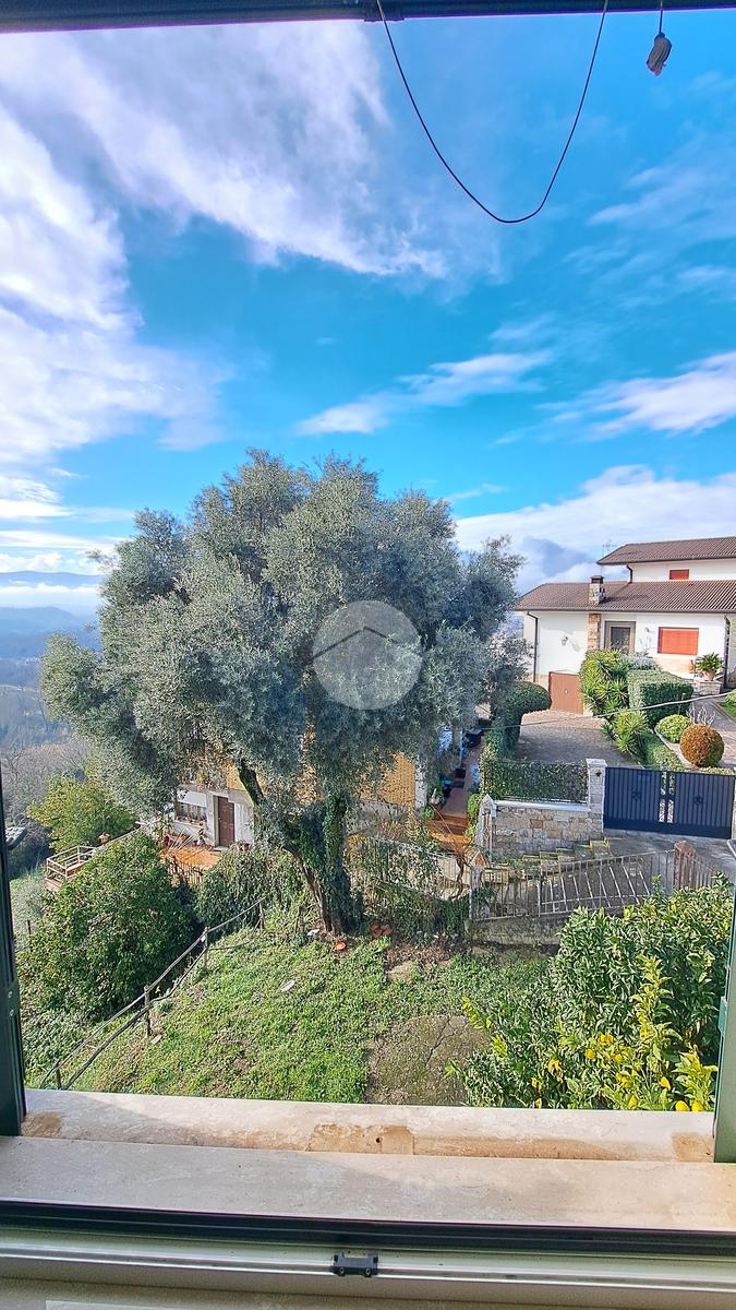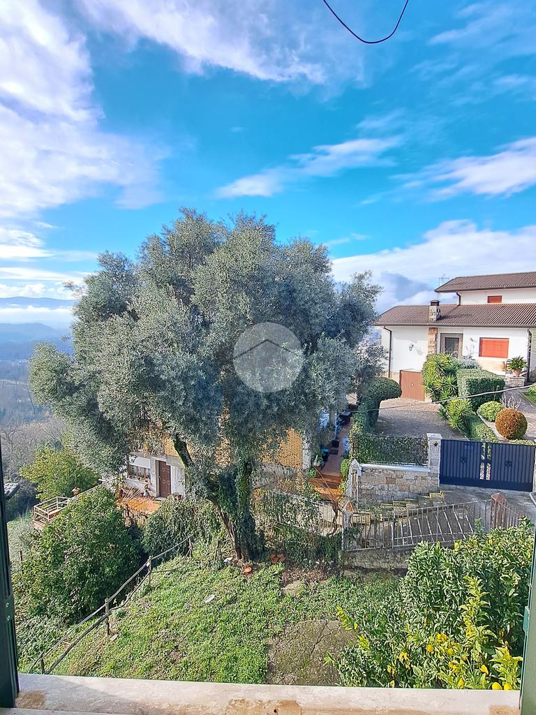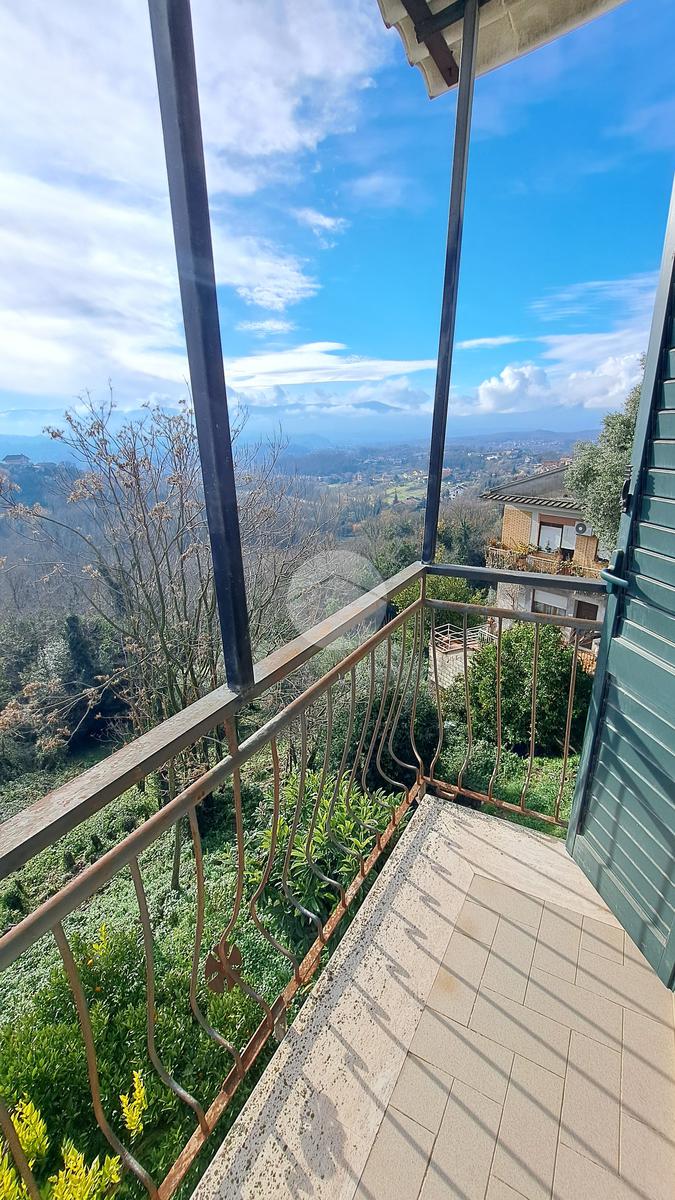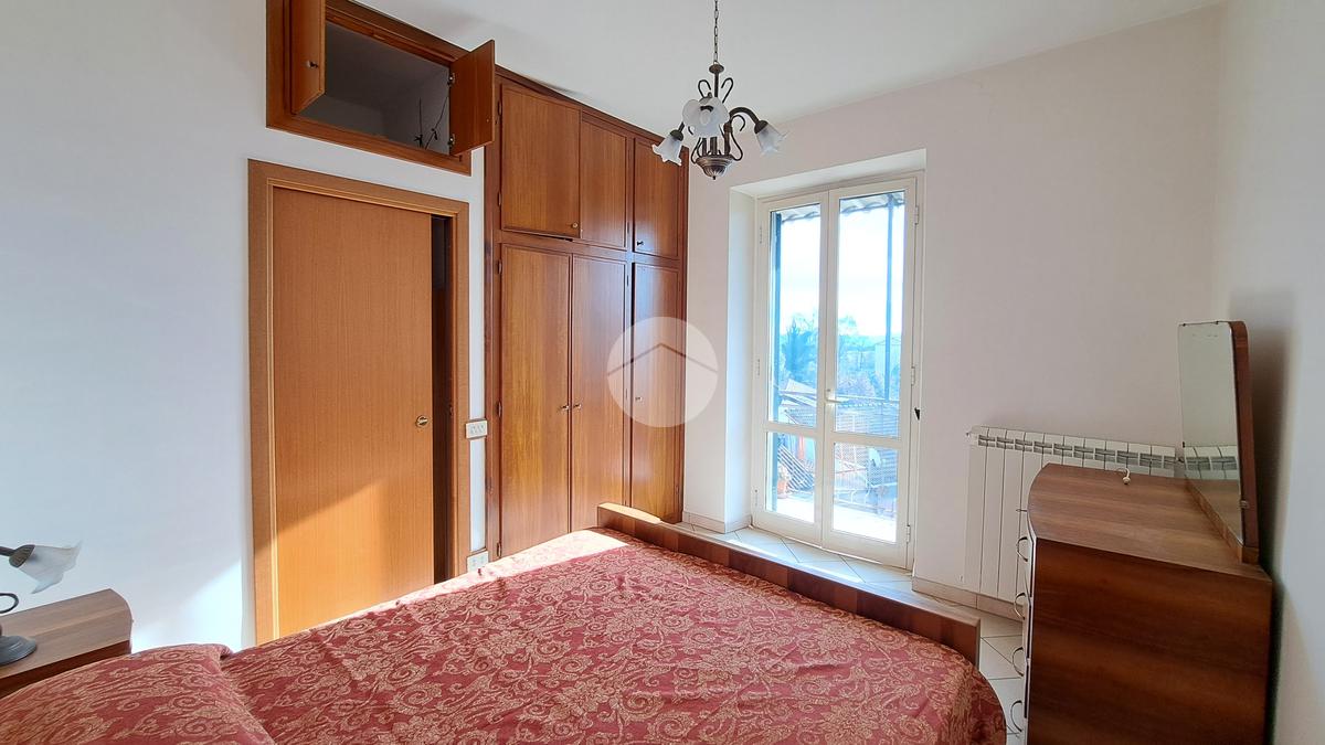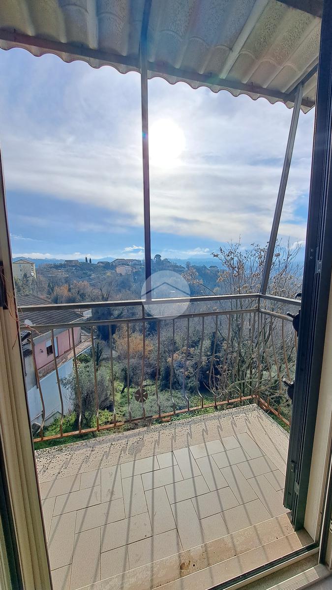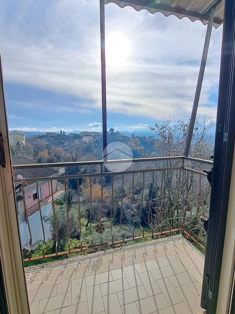 L'appartamento si trova al piano primo ed è così disposto: - entrando dal portone principale troviamo il soggiorno con angolo cottura e di seguito il corridoio che conduce ai vari ambienti dove ci sono 2 comode camere da letto, (una con balcone che affaccia verso la vallata) ed il piano seminterrato c'è un piccolo garage/cantina.