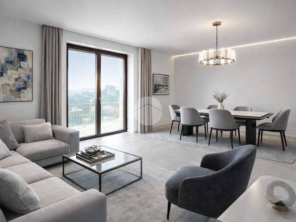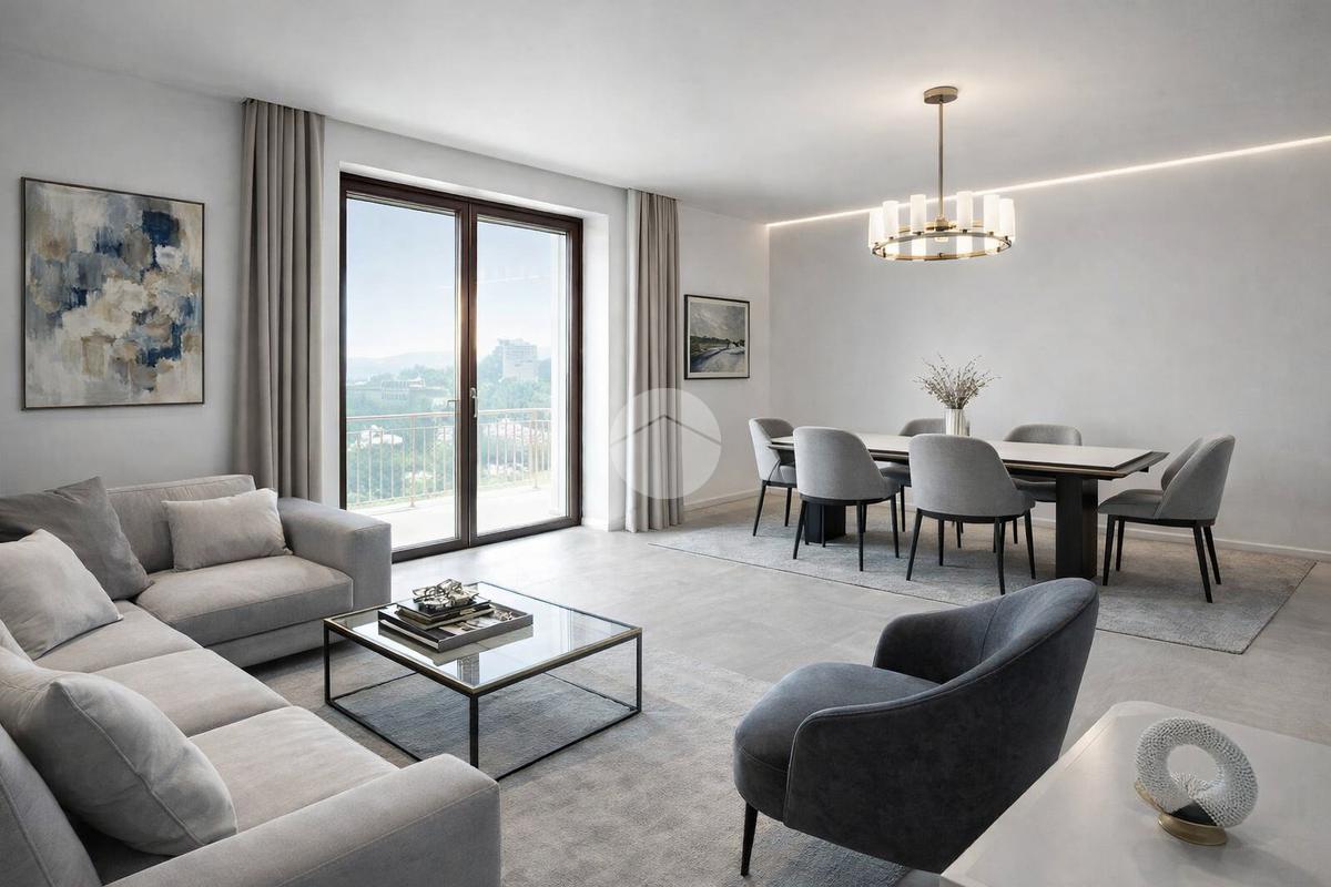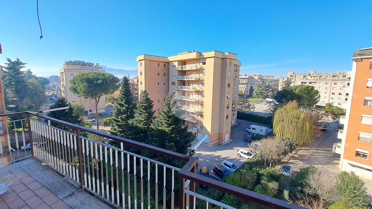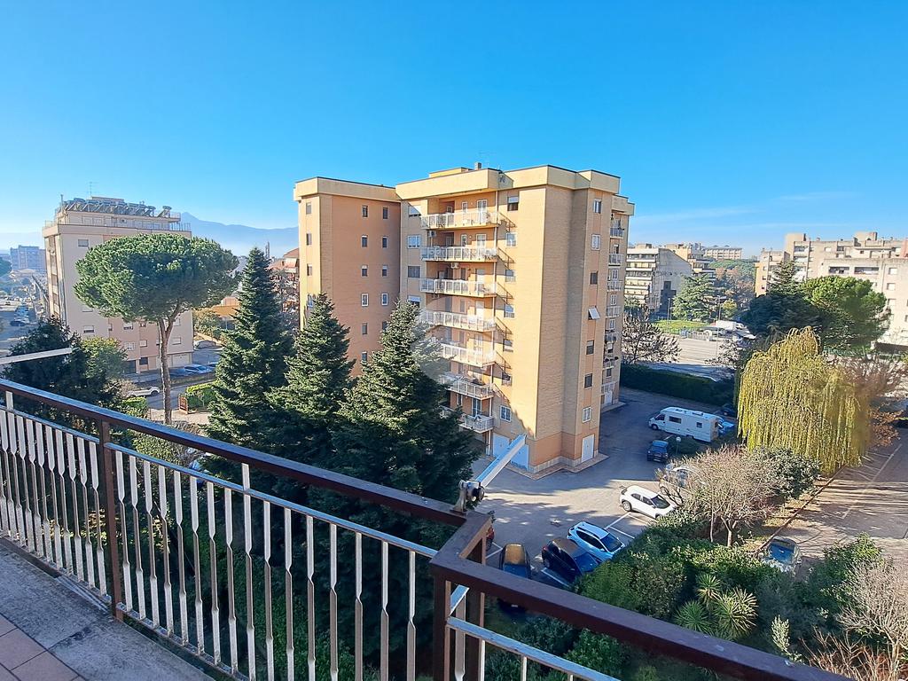 Il portone dà accesso ad un disimpegno. Sulla parte sinistra troviamo un ampio salone arricchito da balconata con affaccio panoramico verso Frosinone bassa e con veduta del centro storico. Accanto alla sala c’è la cucina abitabile arricchita da un ulteriore balcone con affaccio all’interno dell’area condominiale.