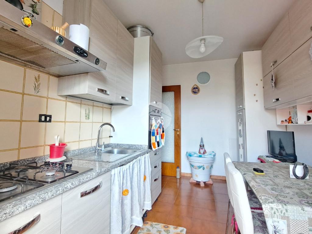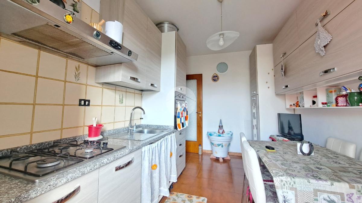 Situato al 2° piano di una palazzina dotata di ascensore, l'immobile si estende su una superficie di 110 mq, offrendo ampi spazi suddivisi in quattro locali e più precisamente entrando dal portone ci troviamo direttamente nel salone con camino e balcone, speculare la sala c'è la cucina abitabile con balconata, nella zona notte ci ono 3 comode camere da letto, 2 bagni e ripostiglio.