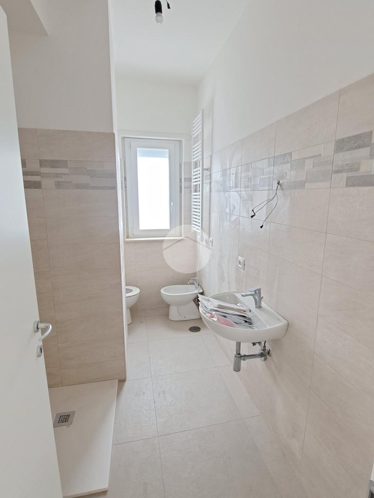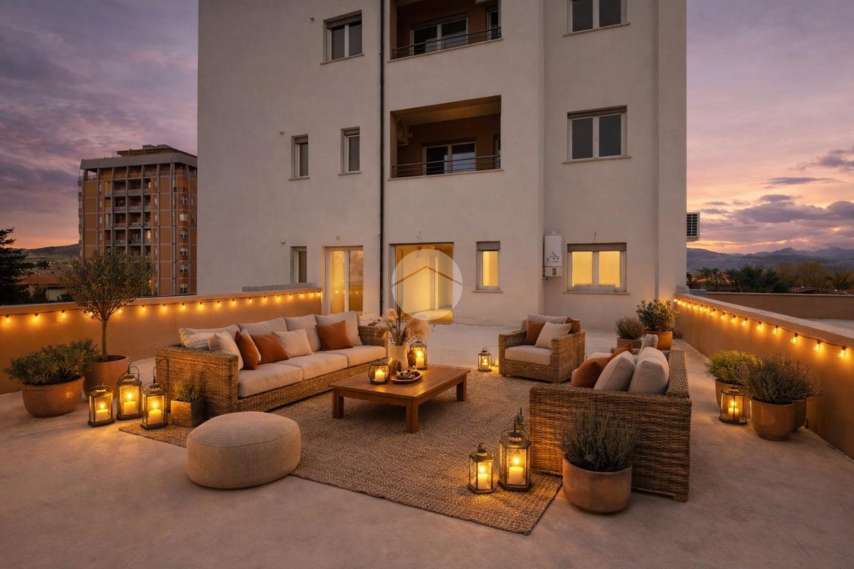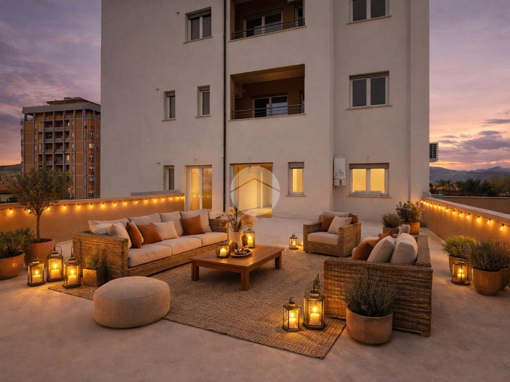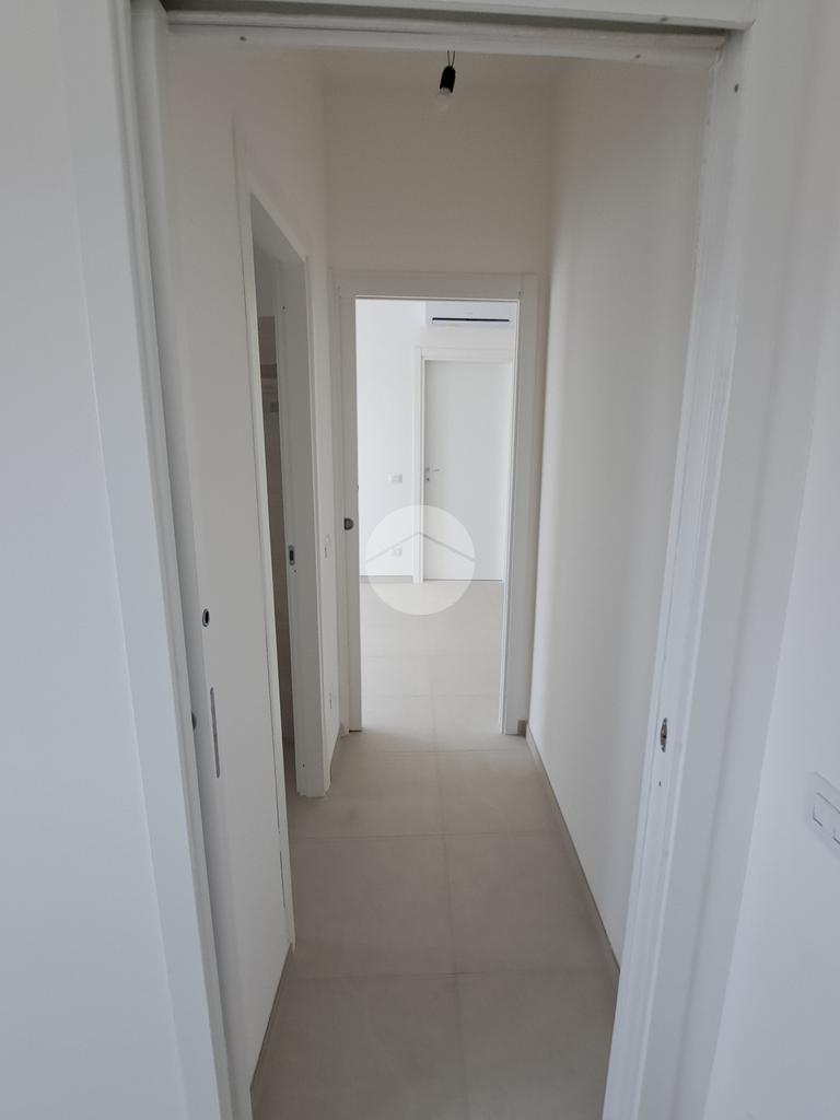 L’appartamento posto al piano 1° ha una metratura complessiva di 80 mq circa ed un terrazzo a livello di circa 500 mq. Internamente l’appartamento è composto da ingresso, salono con angolo cucina, 2 camere da letto e 2 bagni. L’appartamento è valorizzato da un terrazzo di pertinenza, che oltre a concedere uno sfogo esterno per bambini ed animali all’occorrenza, vista la metratura importante, concede la possibilità di poter installare una pergotenda così da poter avere un ulteriore ambiente vivibile e funzionale.