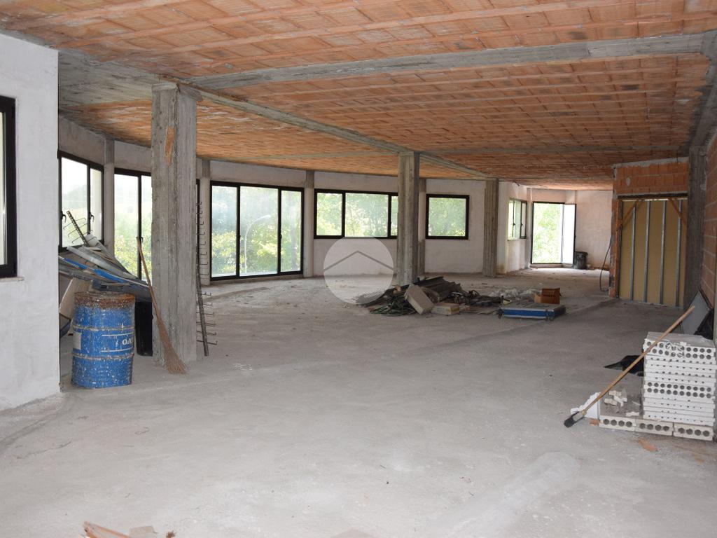I locali retrostanti per complessivi 1.100 mq sono adibiti in parte ad uffici ed in parte zona di lavorazione ed esposizione, in questa parte le altezze medie intorno del fabbricato sono di 5,5 mt.