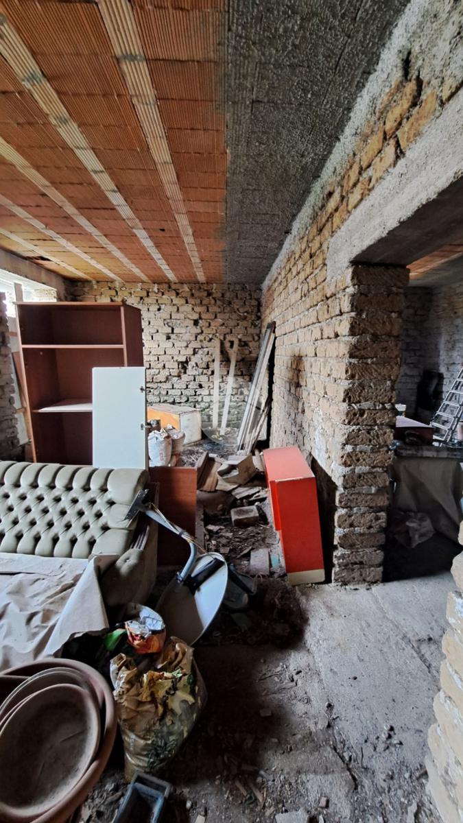 La disposizione è la seguente: salendo al piano terra cè un appartamento da rifinire mentre salendo da una scala esterna al piano primo c'è il piano attualmente abitato ed è così composto: entrando dal portone ci troviamo in un ampio disimpegno che ci conduce ai vari ambienti, sulla destra entriamo in cucina e proseguendo su questo lato c'è un ampio salone ed il bagno, mentre sul lato sinistro c'è la zona notte composta da 3 comode camere da letto.