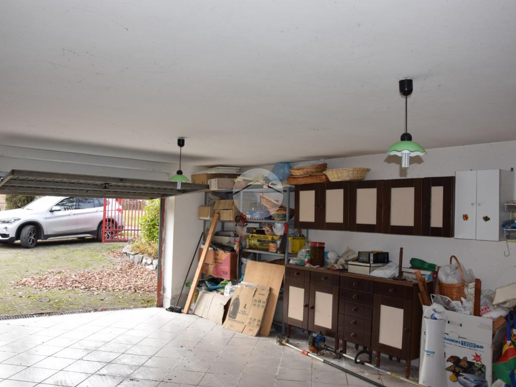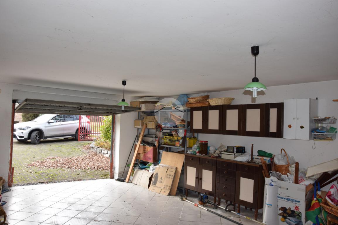Dal cancello carrabile accediamo al piazzale dove sulla sinistra troviamo subito un comodo ed ampio garage che può ospitare anche più di un veicolo; proseguendo lateralmente troviamo il vialetto che attraversa una gran parte di giardino e dove termina con l’ingresso alla villa;