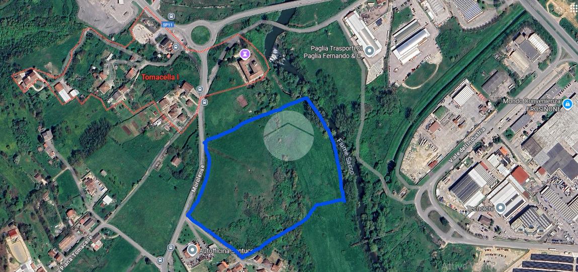 Il terreno ha una superficie complessiva di 47.350 mq, la parte di terreno più vicina alla strada è perfettamente pianeggiante, poi allontanandoci dalla strada troviamo un’altra parte del terreno che si trova ad un dislivello più basso a confine con gli argini del Fiume Sacco.