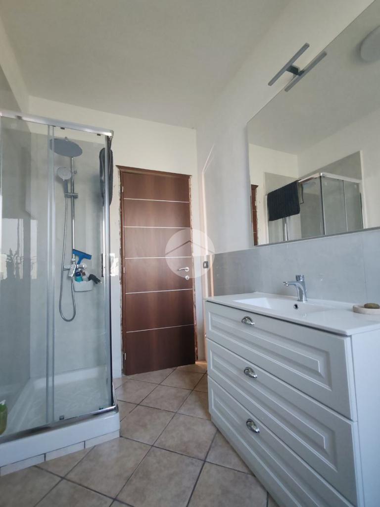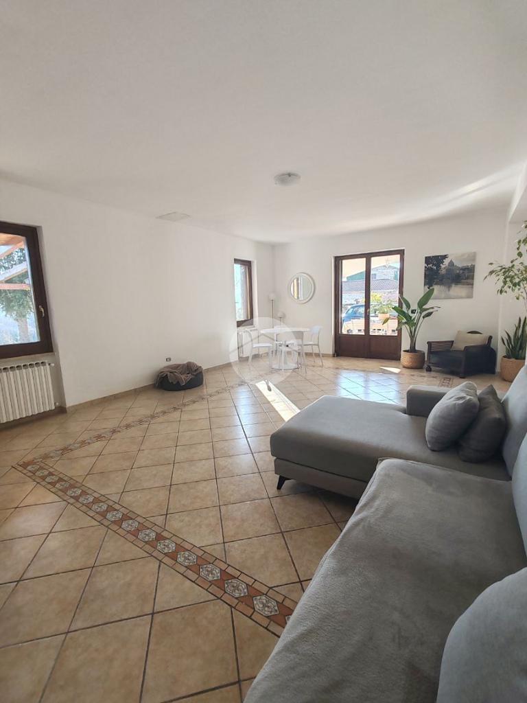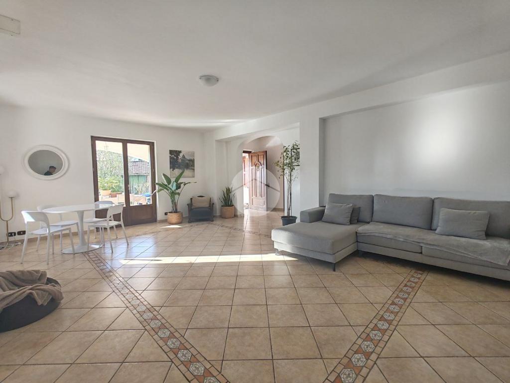 Un porticato (28 mq) ci protegge prima di entrare in casa. Varcato il portone d’ingresso ci troviamo un disimpegno che conduce a destra alla sala principale dell’abitazione, dotata di due ampie finestre che affacciano sul giardino retrostante ed una porta finestre che ci concede l’accesso al porticato. Sul lato opposto rispetto al salone, troviamo una cucina di buona metratura ed una stanza che potrebbe essere adibita come studio o sala hobby. A questo livello disponiamo di un bagno dotato di doccia.
