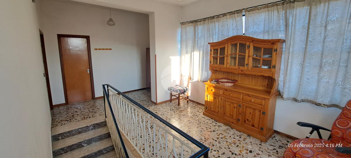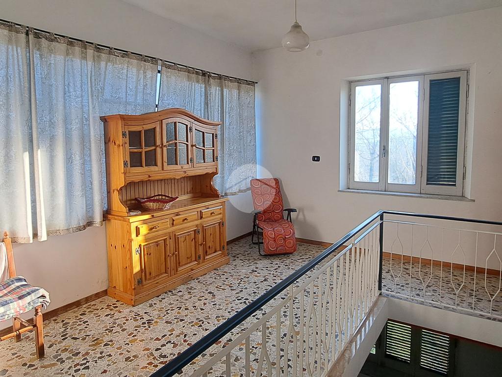 La casa si sviluppa su due livelli. Al piano terra troviamo la zona giorno composta da: ampio ingresso, salone, cucina abitabile con camino. Mediante una scala interna, che ha accesso anche dall’esterno, possiamo salire al piano superiore dove possiamo trovare la zona notte. La zona superiore è composta da n°2 camere da letto di buona metratura, un bagno dotato di vasca.
